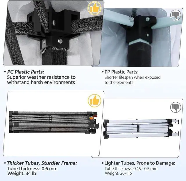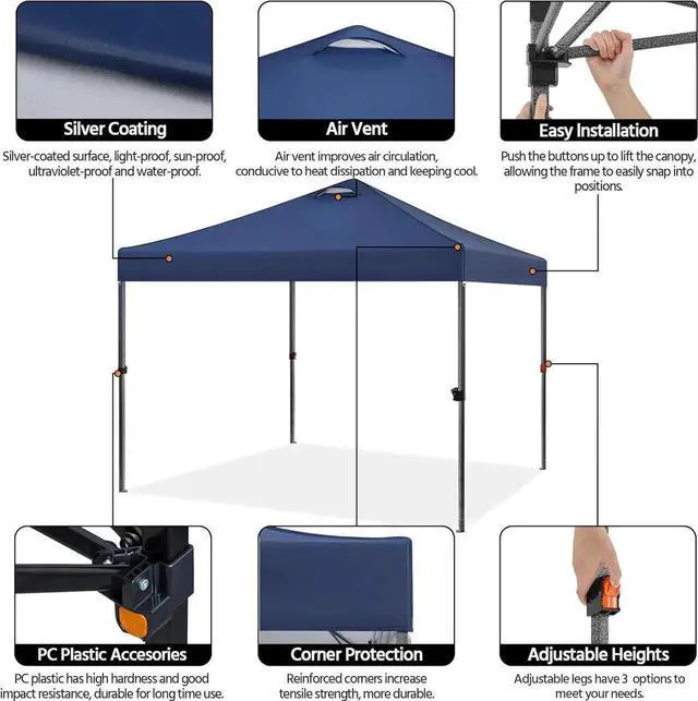 Compact Size For Easy Transport & Storage: Despite providing a refreshing shade of 100 sq. ft. when assembled, this pop-up canopy tent is easy to store and transport. Thanks to the roller storage bag included, you can effortlessly move or store the tent in a compact size of 8.7 L × 8.7 W × 45.7 H