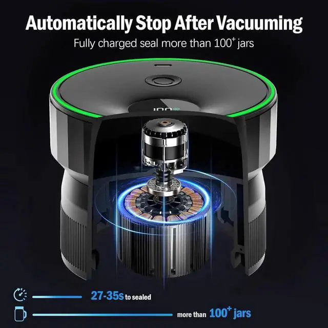FULLY AUTOMATIC OPERATIONThe vacuum sealer for jars does all the work at the push of a button! Our mason jar sealer is designed for effortless use - no pumping, no hassle