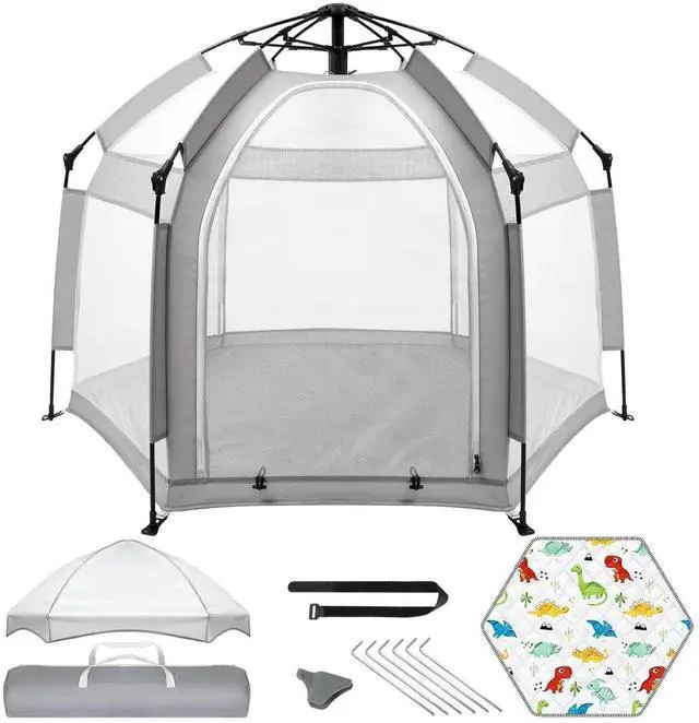 Pop Up Baby Playpen with UPF50+ Canopy & Mat, Indoor & Outdoor Foldable Play Pen for Babies and Toddlers, Portable Baby Beach Tent with Travel Bag, Pop Up Pack and Play Yard, Grey