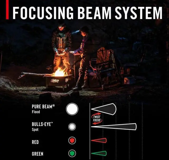 - TRI-COLOR: Select fromfourlight colorsusing the white main beam for general use, the red anti-glare LED to prevent night blindness, and the green LED for lower detectability and emergency signaling.
