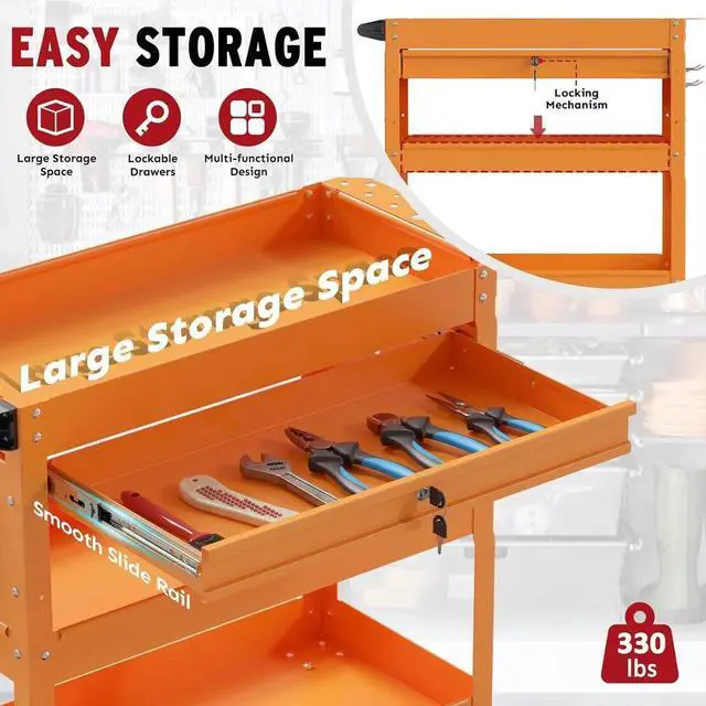 Wide Applications: The rolling cart can be used in the garage, warehouse, workshops, repair shops etc. Not only ideal for professional user but also suitable for DIY enthusiasts and hobbyists.