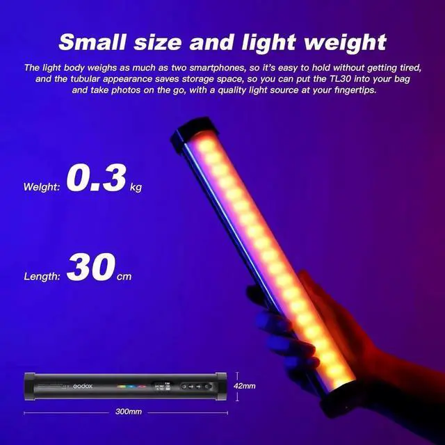Control by smphone APP/ 2.4G wireless/DMX With flexible connecting design, the TL30 can be spliced one by one increative lighting model. No matter you want to put it into different figures, hang on the wall, hold by hand or any other creative usage, it will satisfy with any kinds of shooting scenarios in anywhere.