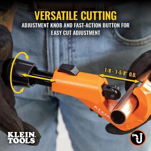 The Quick-Adjust Tubing Cutter is designed to cut copper and aluminum tubing. The fast-action button easily adjusts cutting capacity, ranging from 1/8-Inch to 1-5/8-Inch (3 to 41 mm) O. D; up to 1-1/2-Inch (40 mm) I. D. Equipped with a retractable telescoping deburring tool, post-cut clean up is quick and seamless. For more than 160 years, has manufactured premium-quality, professional-grade hand tools that deliver the performance, durability and precision needed to get the job done right. Our family of engineers, workers and craftsman continue to put six generations of expertise into every tool we create by using only the highest quality materials, superior workmanship, and keeping manufacturing as close to home as we can. Klein isn't just the name of our company, it's also our family name. And since we're an American company that's family-owned and family-run, you know you can count on us to be here tomorrow. doesn't just make great products, we make great products that stand up to the demands of the professionals who use them every day... Since 1857.