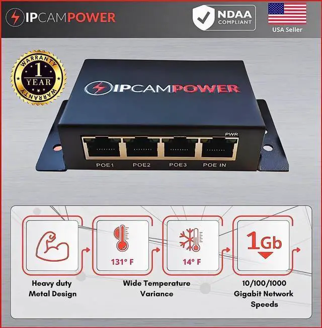 Port Unmanaged Switch: This device will take an incoming POE power source to be powered and act as a standard 3 Port POE switch. Has 1 port in and 3 Ports out. Useful if you want to take an incoming POE signal sent through one cable and be split out to power 2 cameras at once. Can also be used as a switch for non-POE devices as well. This device requires no local power and does not need a receptable nearby. The only way it is powered is by the incoming POE power from your POE switch or injector. It is also gigabit rated for fast data transfer speeds.