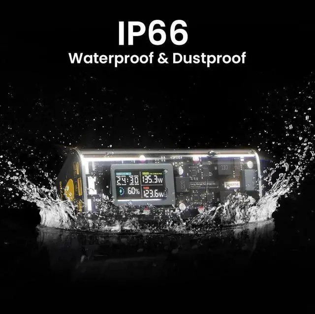 - IP66 Water Resistant: The First IP66-rated high-power portable charger on Amazon. Tough against dust and water.