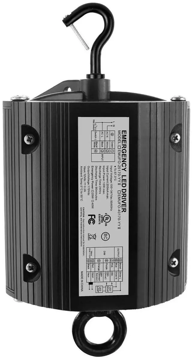 40W LED Light Emergency Backup Battery 100-347V Output DC170V, Rechargeable LED Emergency Driver for UFO LED HIGH Bay Light with External Driver, Emergency Time 90 Min UL Listed.
