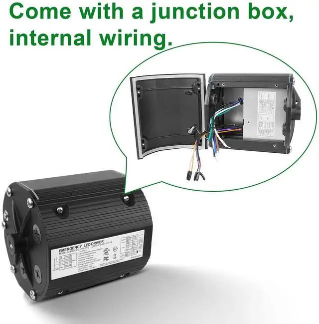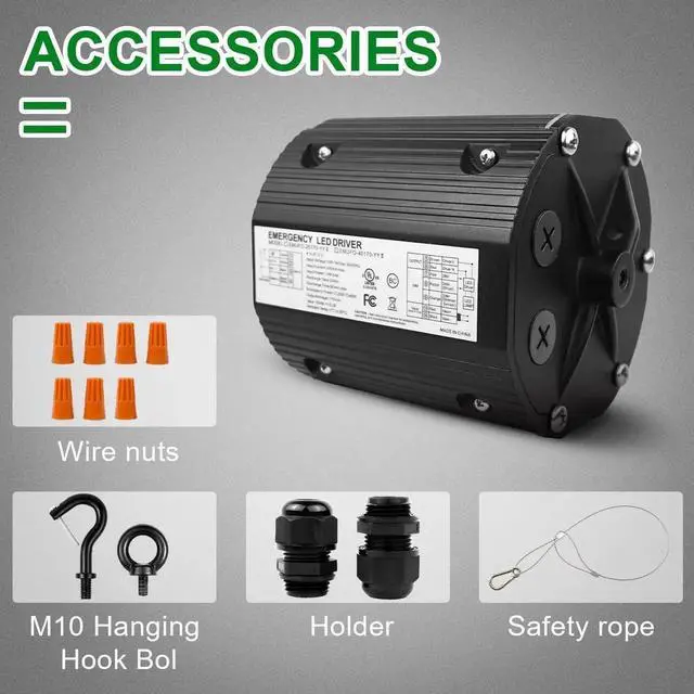 This LED Emergency drivers got approval of UL DLC. Emergency time 90mins (Min.), Charging Time: 24hours Unrivaled emergency solutions for UFO LED HIGH Bay Lightfalse When AC power fails, this emergency LED driver immediately switches to the emergency mode, operating the LEDs at a reduced lumen output for a minimum of 90 minutes. When AC power is restored, the emergency driver automatically returns to the charging mode.false It adopt a long-life recyclable Lithium battery. Mounts to the junction box and provides flexible conduit for remote mounting of the test accessories.(AC Input 100-347V Output 170V) for 8w-300W LED products, It can connect to the input end of LED lightfalse