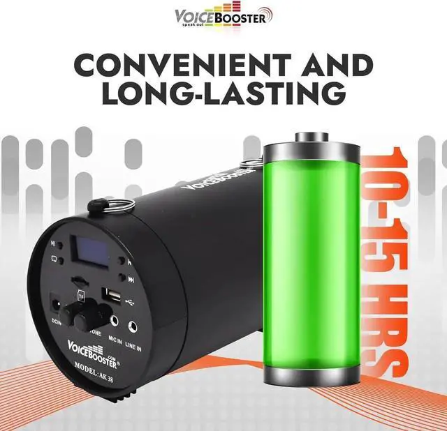 POWERFUL VOICE AMPLIFIER This portable speaker delivers 25W of amplified sound, covering 8,000 sq ft making it ideal for public speaking, fitness classes, or any situation that requires a reliable communication device. A classroom must have for teachers, go-to sound system for tour guides, and a convenient solution for outdoor events where your voice needs to carryRECHARGEABLE & LONG LASTING BATTERY Built-in rechargeable battery powers this portable voice amplifier for 1216 hours of continuous use and fully recharges in just 6 hours. It provides reliable, consistent amplification for 23 yearsperfect for anyone who needs dependable, hands-free voice projection every day