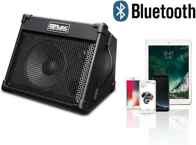 BluetoothProvide with options of wireless connection, phone input, CD/MP3 input, and USB plugin, it is able to fit in the different connection types, it is convenient and useful with its master control, headphone input and DI output, recording and MP3 function. falsePortable15*14*13 inches midsize and 16 lbs allow a less burden performance, and 2 coaxial speakers, 8 woofers and 2 piezo tweeters can deliver a big, full and natural sounding for acoustic guitar and microphone. falseRechargeableIt can run up to 5-8 hours depends on the volume you use after 5 hours charge.