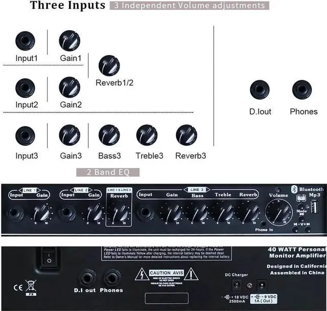 And it can work with a connection directly to the electricityfalse- 3 ChannelIt is able to plug in 3 different instruments together, such as guitar, piano keyboard, microphone, etc. 2 Band Balance meet the needs of various music style and the built-in reverb effect ensures natural and echo-like sounds