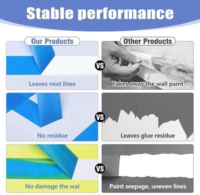 Wide uses: Blue tape has the characteristics of precise positioning, high temperature resistance and easy to tear, which is an ideal choice for families, professional ration people, painters, and DIY handicraft rs