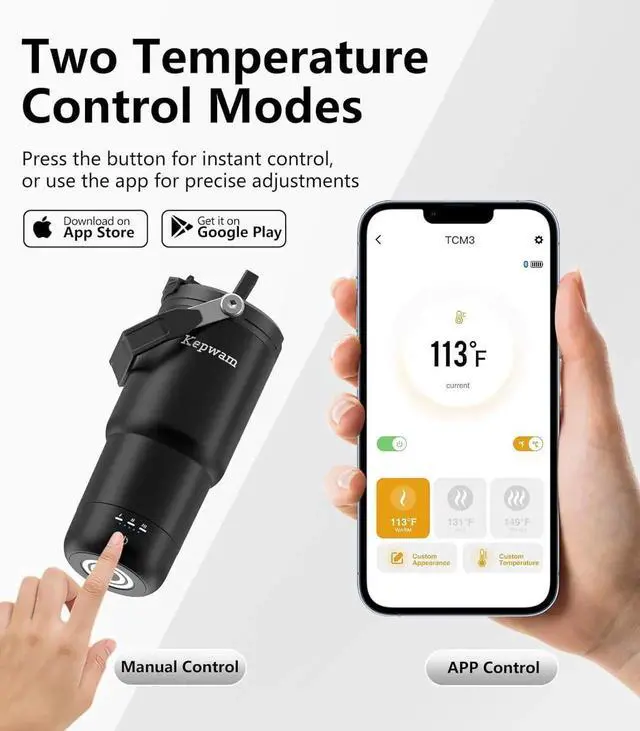 Premium Build Quality Crafted from high-quality 18/8 stainless steel with double-wall vacuum insulation and nished with a food-grade ceramic coating, it provides durability and a smooth, comfortable grip. For best care, hand wash only. Do not clean with hot water. Dishwasher or microwave use may damage the battery and shorten the overall lifespan of the temperature-control system.