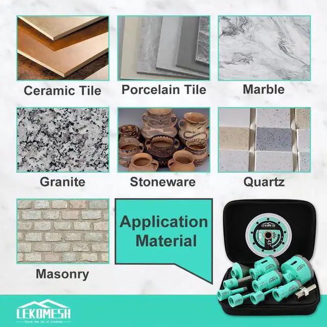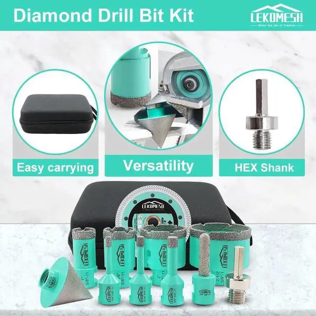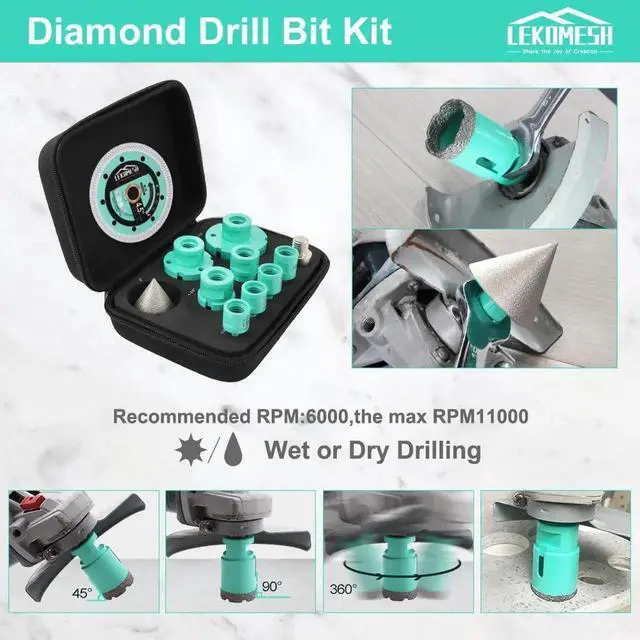 TECHNOLOGYThis tiling installation kit is made of high quality diamond and steel by vacuum brazed diamond technology. Provide very high efficiency, drilling and milling faster, durable and sturdy.