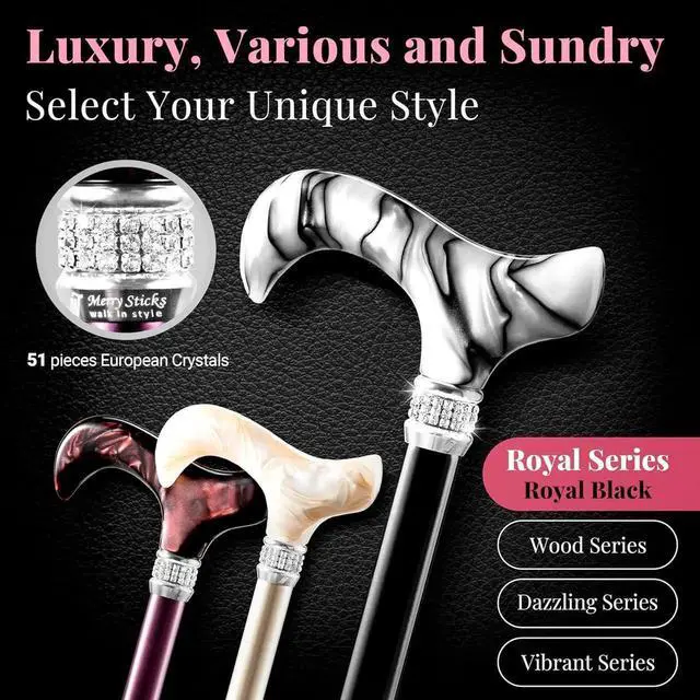 Luxury Design: Featuring a sophisticated acrylic handle compented by an elegantly crafted collar adorned with 51 meticulously set European crystals. The Royal Series offers both functionality and luxury. The striking combination of high-quality materials not only s its aesthetic appeal but provides a touch of refinement and exclusivity.