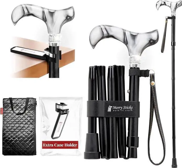 [Combo] Lightweight Foldable Walking Canes for Women and Men, Adjustable & Collapsible Walking Stick for Seniors, Includes A Cane Bag & A Smart Reflective Cane Holder