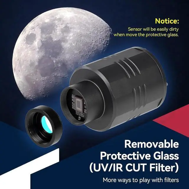 With IMX662 color CMOS sensor; no amp glow and low readout noise; higher sensitivity to red and near infrared (NIR) light; suitable for EAA astronomy