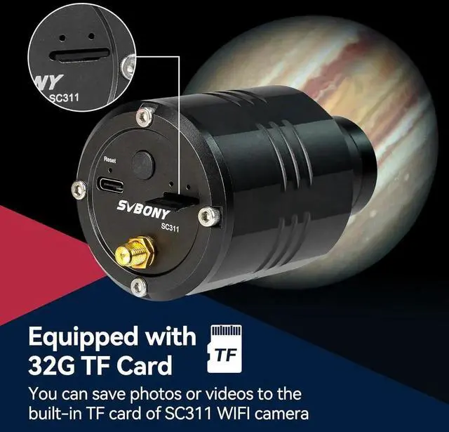 Connect to our Astro software application; you can do observation on phone or pad and save them to the SC311 camera built-in TF card; easily share to social media