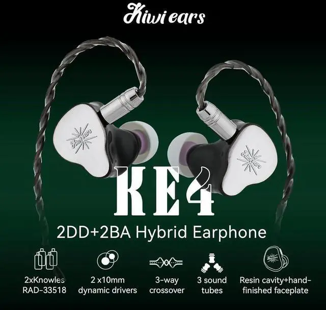 - The Kiwi Ears KE4 has been engineered by hand from start to finish. Featuring a 3-way passive crossover system and 3 independent sound tubes, every miniscule detail of acoustic engineering has been undertaken to achieve its tuning. The shells are made from medical-grade resin and are adorned with hand-finished faceplates.