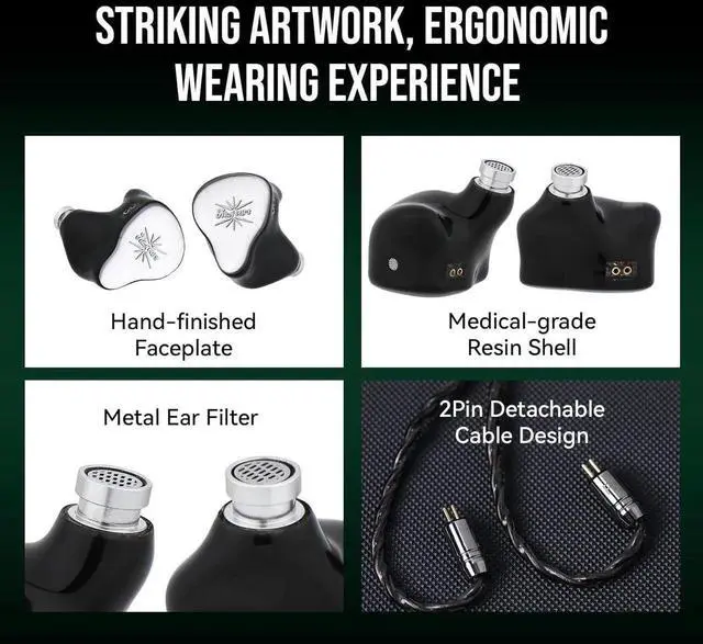 The shells are made from medical-grade resin and are adorned with hand-finished faceplates. We are a small international group of engineers with a single goal of producing the best sounding audio solutions for musicians and audiophiles. We focus on developing the latest technological driver innovations with refined tuning strategies that reveal every nuance in your music and performance. Our small team of dedicated engineers handcraft each unit so that you can worry less about whats in your ears and focus more on the sounds you are making. - The KE4 starts fresh from the ground up, featuring a 2 Dynamic Driver (2DD) isobaric sub-woofer system, combined with 2 Balanced Armature (2BA) full-range and tweeter speakers.