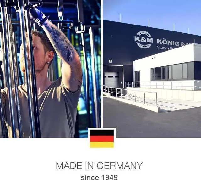 Konig & Meyer 14940.000.55 Speaker Mounting Fork Stand | Adjustable Width 12- 19 | Two 55 lbs Single Speakers on Slip On Stand | Attach to 1.38 Tube Diameter | German Made | Black