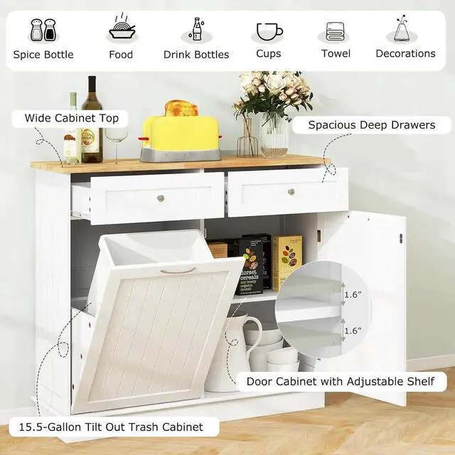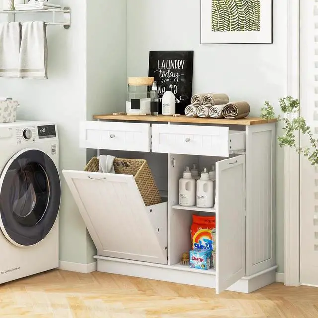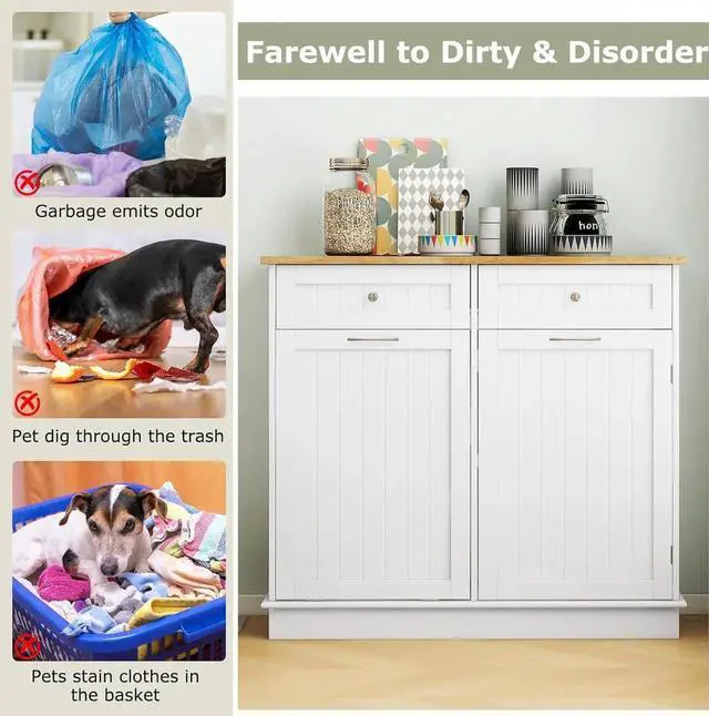 Multifunctional for Various Uses: Beyond a mere kitchen fixture, this versatile cabinet effortlessly adapts to any rooms requirements. It can used as a laundry basket in the laundry room, a recycle bin, a pet food storage cabinet, or a coffee bar in the living room.