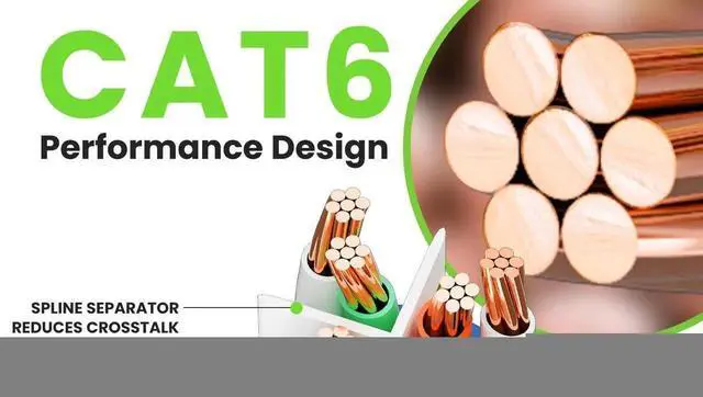 UTP 24AWG stranded conductors for flexibility, twisted in pairs and nested in a spline to minimize crosstalk, 50 micron gold-plated contacts for high-speed data transfer and corrosion resistance, as well as molded, snag-less strain relief boots for long lasting, durable connections