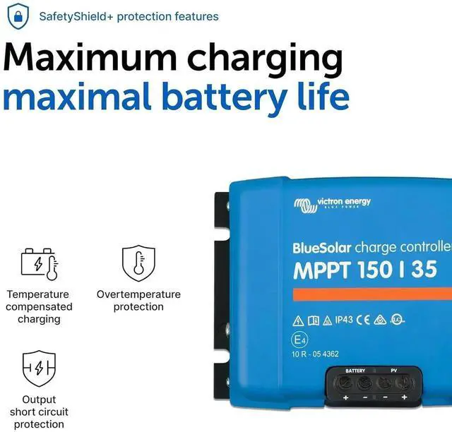 MAXIMIZE POWER OUTPUT: With lightning-fast optimum power point tracking and intelligent charge algorithms the Victron MPPT solar charge controller makes sure you always get the maximum possible power output, even when your solar panels are partially covered in shad