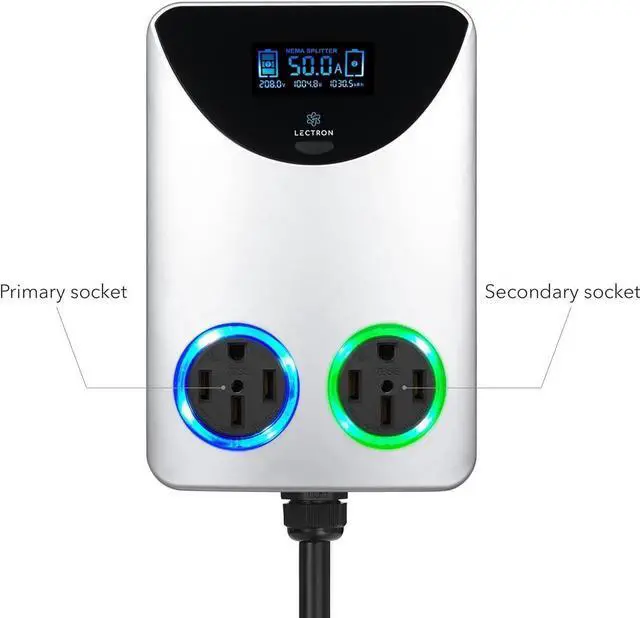 COMPATIBLE NEMA SOCKETS - This NEMA Socket Splitter has a NEMA 14-50 inlet plug, a NEMA 14-50 primary socket, and a NEMA 14-50 secondary socket. Not compatible with tesla chargers.