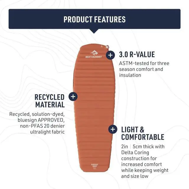 Thermally efficient Contour shape provides support for side sleeping and movement without added weight; horizontal Delta cores create air-filled chambers that reduce bulk and increase comfortfalseXPEL multi-function valve and side-loading stuff sack make inflation, deflation, adjustment, and packing fast and easyfalseRectangular Large Wide sleeping pad measures 78 x 29.9 x 2 inches and weighs 2.31 pounds; R-Value of 3.0 (ASTM-tested)false- The lightest self-inflating sleeping mat in its class, offering three-season comfort for backpacking and camping