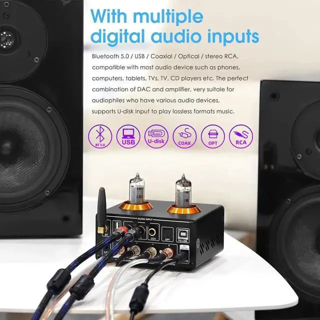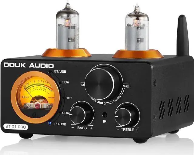 HiFi clear sound with tone control: reson circuit and concise wi, adopts vacuum tubes to soften the sound and filter out the digital feelings, sounds warm and sweet without noise. Also with treble and bass knobs to adjust one's own prefer sound styles, presents HiFi music with rousing highs and deep lows.