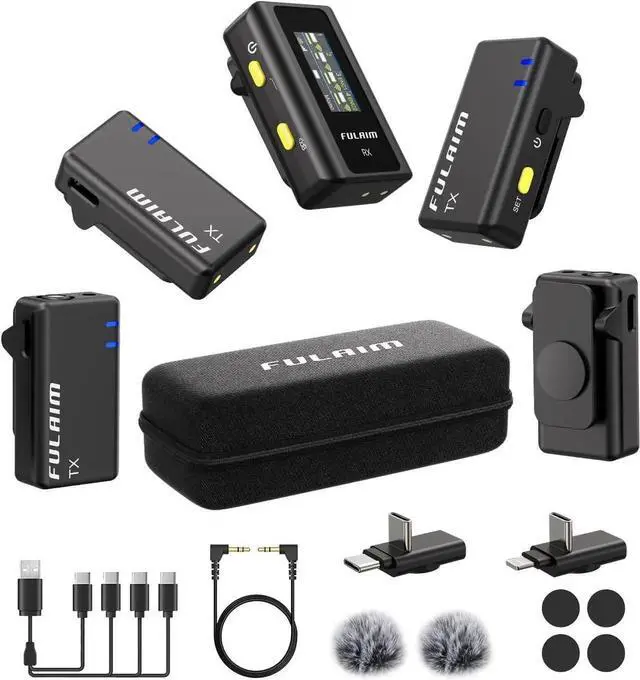 High-Quality Audio Recording: The transmitter features features a 48kHz/24bit audio format, capturing every detail of your recording. Intelligent noise cancelling makes vocals more clear, even when conducting interviews or shooting videos in locations with erratic and unpredictable sounds.false4 Transmitters Wireless System: The FULAIM X6 microphone system allows for up to four microphones to be used simultaneously, making it perfect for group presentations, conferences, or interviews.falseWide Compatibility: The wireless lavalier mic comes with an iPhone adapter, type-c adapter, and 3.5mm audio cable, making it compatible with a wide range of devices, including iPhone and Android smartphones, as well as cameras.false