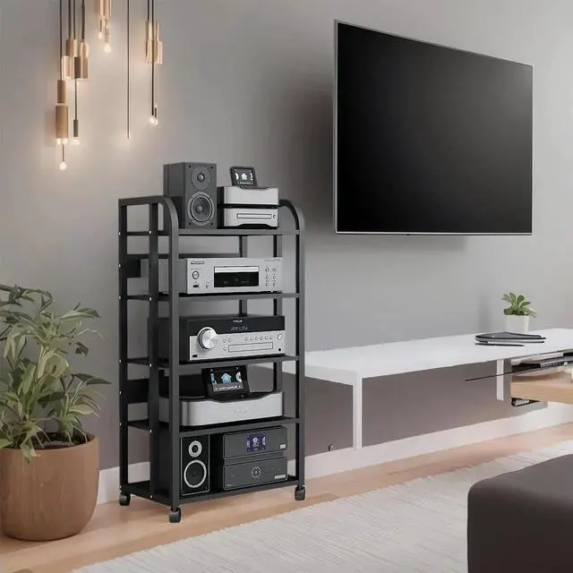 Multi-Functional Storage Space: The media stand adopts multi-layer open storage space, which can not only meet the classification and storage of different items, but also very convenient to take, can be used as media cabinet, stereo cabinet, media shelf, audio rack, game console, record player cabinet, audio-video shelving, corner shelf, etc.