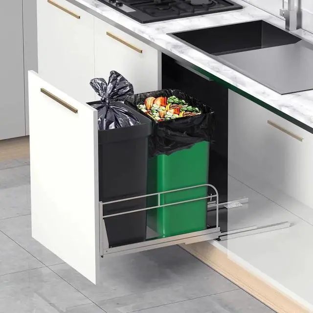 Multiple Application Scenarios: The under sink trash can pull out is suitable for kitchen, pantry, bathroom, laundry room, tool room and other occasions. Help customers improve kitchen, bathroom, closet and other facilities to make them more efficient, orderly and clean