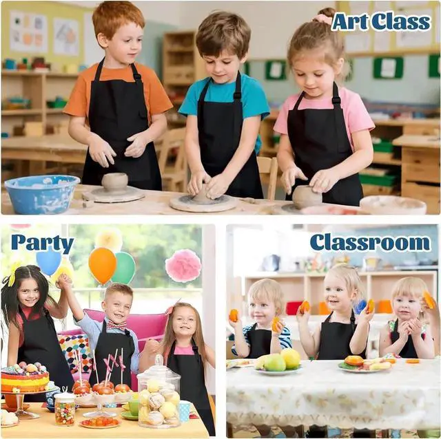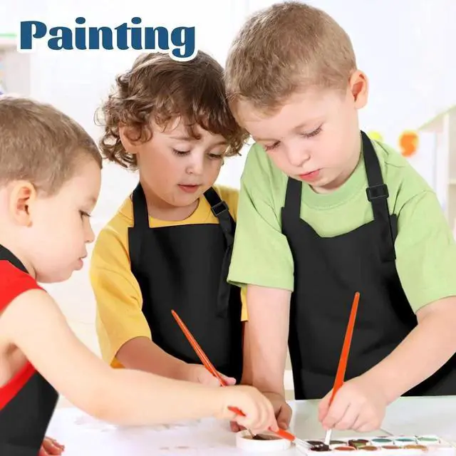 Size: Aprons are made of nice polyester fabric, machine washable, have a little shrinkage, and no fading. The measurement of aprons approx is 17.7 * 23.6 in/45*60cm, fits girls and boys in the range of age 6-12 and height of 3''7 to 4''6.