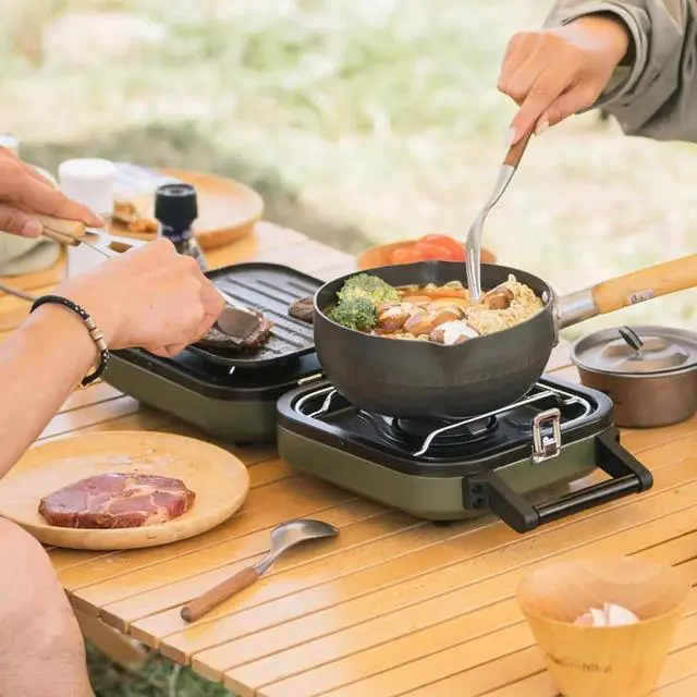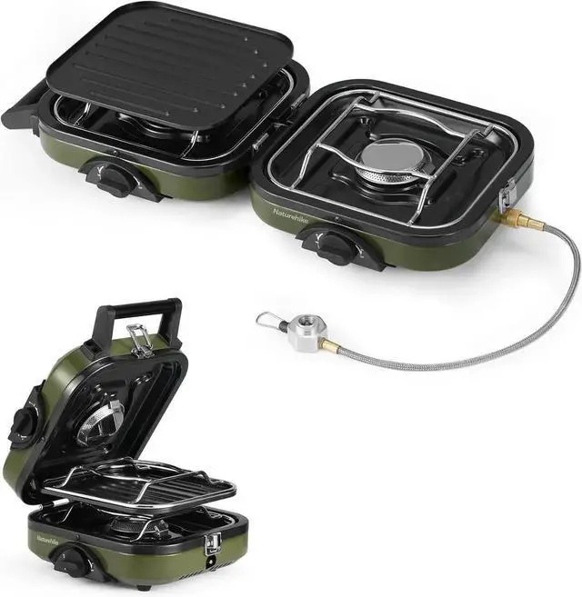 - [PORTABLE AND MULTIFUNCTIONAL] Naturehike's folding camp stove is portable and lightweight, folding into a small handbag size( 10.6 x 8.5 x 5.1 and 5.5 lbs in weight). It eliminates the need for extra frying pans, making cooking a breeze with its built-in griddle.