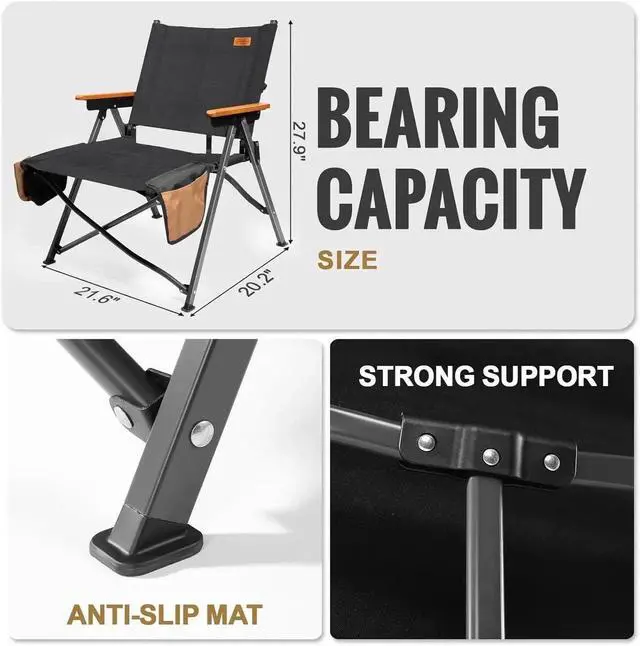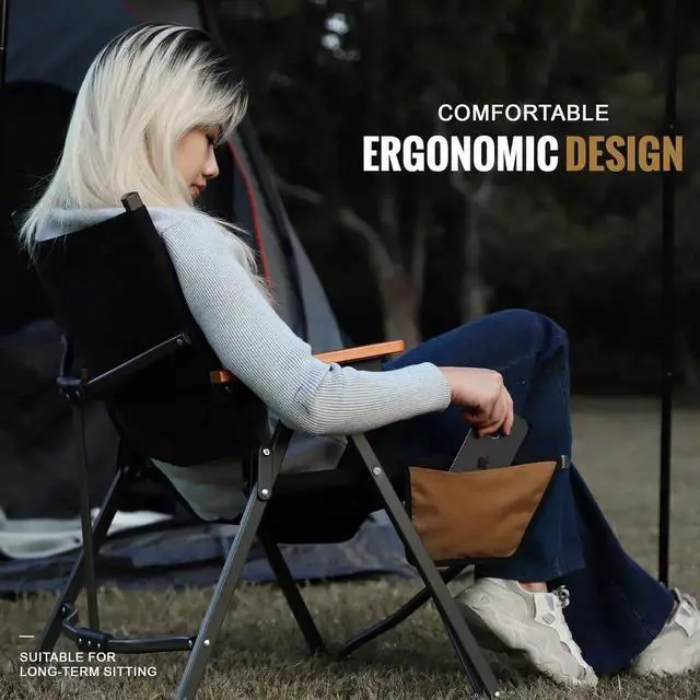 Hight-Quality Camping ChairOur camping chair features a reinforced aluminum-iron alloy frame and 600D Oxford fabric, this chair is not only waterproof and breathable but also easy to clean. Upgrade your outdoor experience with our premium camping chair.
