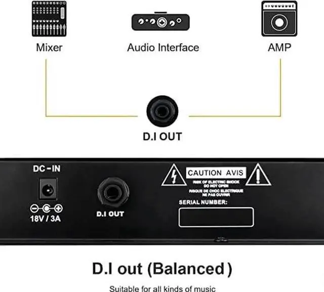 - Headphone and DI OUT 1/8" Headphone Output Jack for Silent Practice. DI output port for external active speakers.
