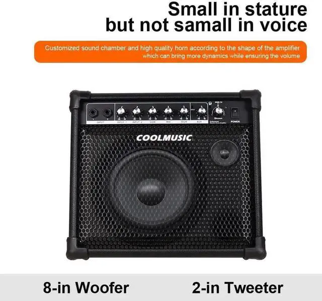 - Multipurpose amplifierUse for Electric Drum practice, keybord practice, band performance, outdoors playing. Frequency response ranges from 20 to 20KHZ. Musical instrument input which can be connected to 'electronic drum', etc.