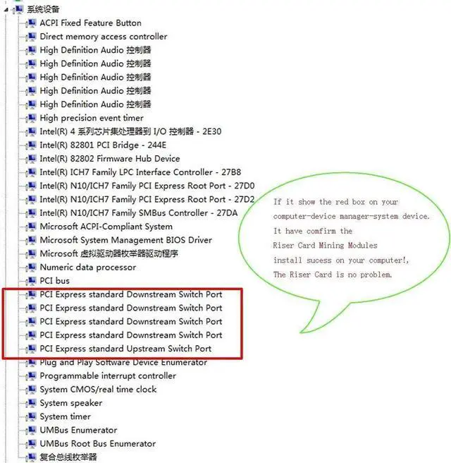imultaneously support 4 PCI-E 16X devices, non-interference. Customized for mining BTC. 2 layers PCB board design. Compliant with PCI express 2.0 & 1.1 specication. Solid capacitors supply stable power delivery. Reduced burden on the motherboard by simultaneous power supply from big 4Pin and SATA slots. Easy installation, fully plug and play, convenient and efcient.