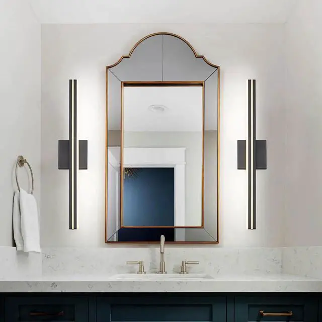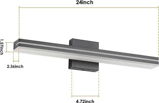 Dimmable LightingIts fully dimmable with a compatible dimmer switch to meet your demands for specific brightness at anytime, quite convenient for daily use. (Dimmer Switch not Included) falseEasy to InstallThis sleek and modern vanity light very easy to install. Sturdy fixture, gives off great lighting. Light is very bright with a cool color temperature and shoots it down. false- MaterialMetal Black Frame with advanced electroplate craft and sealing technology, dust-proof, fog-proof, anti-corrosion and moisture-proof, suitable for humid environment. Frosted White Solid Acrylic Lampshade is rugged, durable and unbreakable, provides excellent down lighting without glare.
