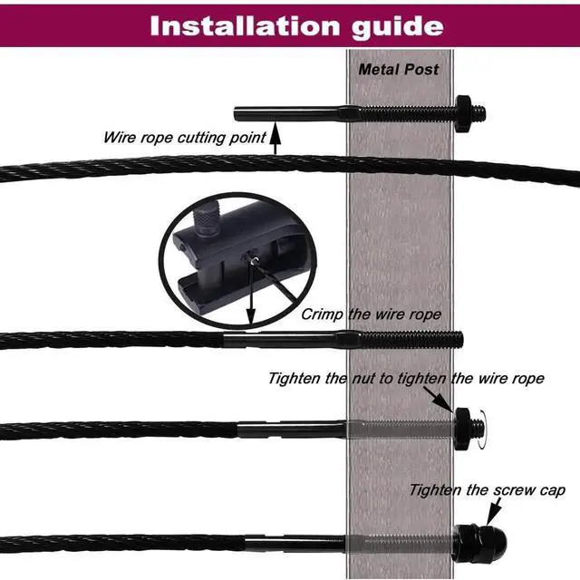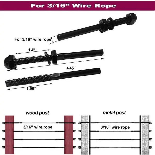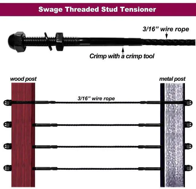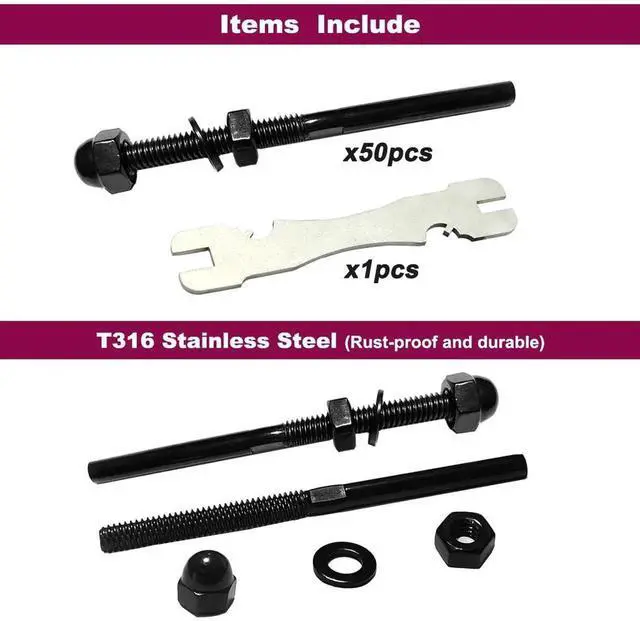3/16 ack 50pcs Swage Stud Tensioner, T316 Stainless Steel Cae Railing Hardware, Cae Railing System Kit, for Wood & Metal Posts Cae Railing System