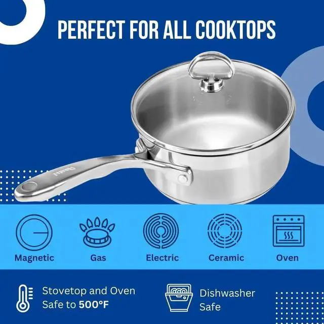 DISHWASHER SAFE: Stainless Steel pan is oven and broiler safe to sear; braise or deglaze; Dishwasher Safe; Limited Warranty