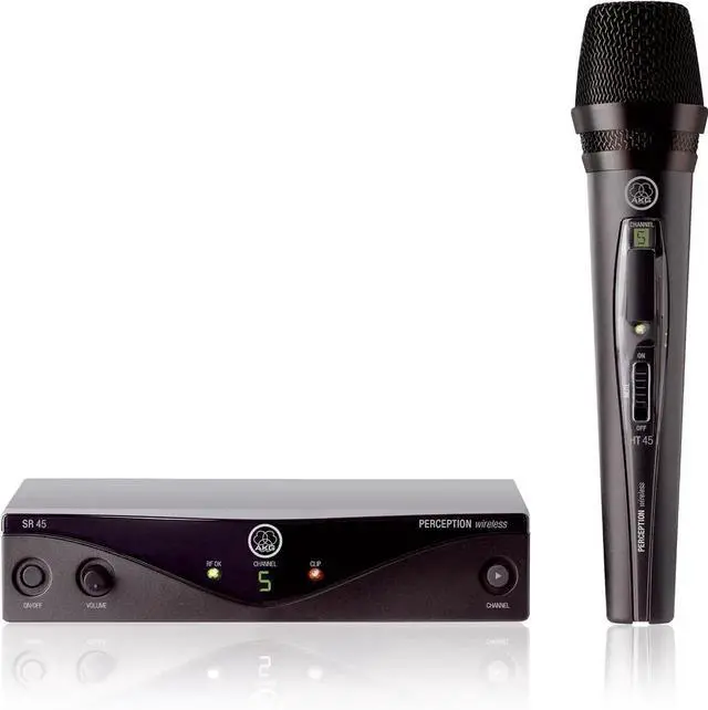 View larger the perception wireless vocal set package includes: 1 x SR45 receiver 1 x HT45 handheld transmitter 1 x stand adapter 1 x Universal power supply with us/UK/EU adapter 1 x AA size battery gain control