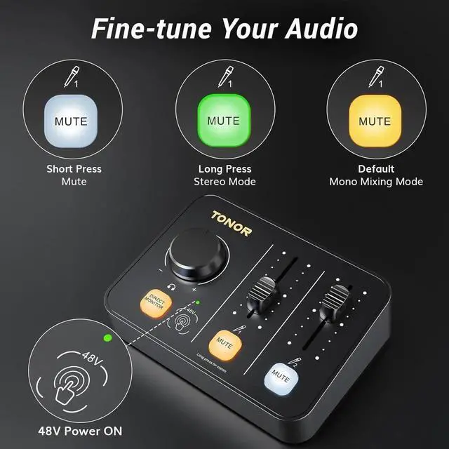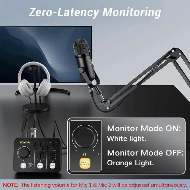 What You Get: This podcast equipment kit includes 2×microphones, 2×XLR to XLR cables, 1×audio interface, 1×TYPE-C to TYPE-C+USB cable, 2×boom arms, 2×reinforced bases, 2×pop filters, and 1×user manual