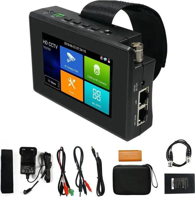 [ Multi-function CCTV Tester ] It has network tools, PING test, IP address scan, port flashing, dhcp server, etc. It support max 30W POE power output, temporarily powers the camera or other devices supported by the IEEE 802.3 af/at standard protocol. Support DC12 3A power output. Built in Wi-Fi, create WIFI hotspot. 7.4 V /2400mAh Lithium Ion Polymer BatteryfalseWe are the manufacturer. Any questions, please let us know, We'll get back to you within 12 hoursfalse- [ IP Analog Camera Tester ] 4'' IPS touch screen, IP Discovery/Quick ONVF/IPC test /RTSP play /Client APK.