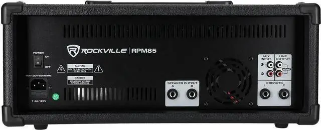 AND DURABLE DESIGN: - Compact at 19" x 12" x 7.5" and weighing 20 lbs, the rugged build suits mobile setups, home studios, or small event spaces. falseThe Rockville RPM85 is an 8 channel wood cabinet powered mixer with USB/SD input and LCD display. This mixer is one of the best sounding powered mixers on the market. This will compete with the most premium brands on the market in terms of sound quality and how much power this has. I personally tested our RPM series of powered mixers and I was completely blown away! I ran this to (2) Yamaha speakers and even with the volume turned up half way these were insanely loud! When I cranked the volume to 90 % the clarity was just un-believable. The power amp built into this mixer is 225 x 2 RMS @ 8 ohms and 300 x 2 RMS @ 4 ohms. We rate the RMS very strictly the way famous brands like Mackie rate their items. We also supply you with program and peak ratings but RMS is the true continuous output power.