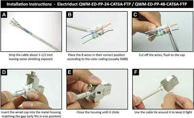 NO Punch-Down tool necessary (but recommended) / Keystones with color-coded T568A and T568B wiring diagrams