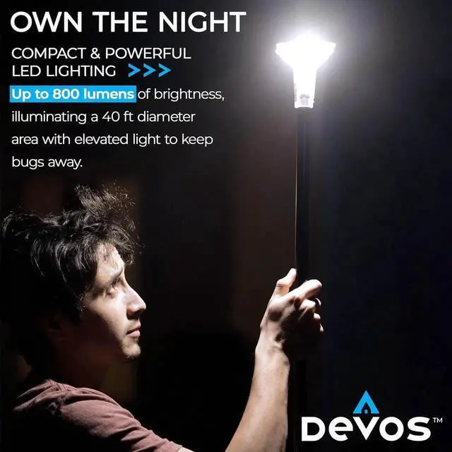 - Compact & Adjustable Design: Features a 4-section telescoping pole with an adjustable height range from 33" to 8 feet, offering flexibility for various lighting needs in any outdoor setting.