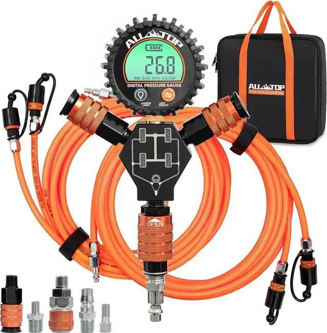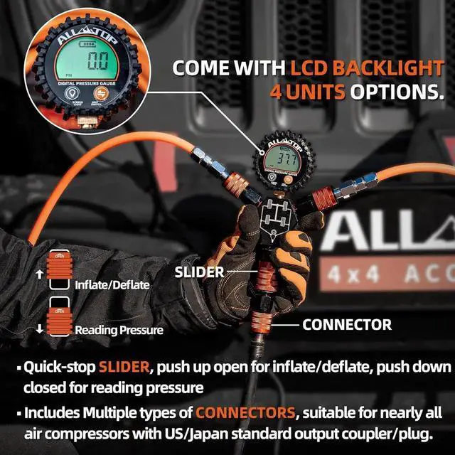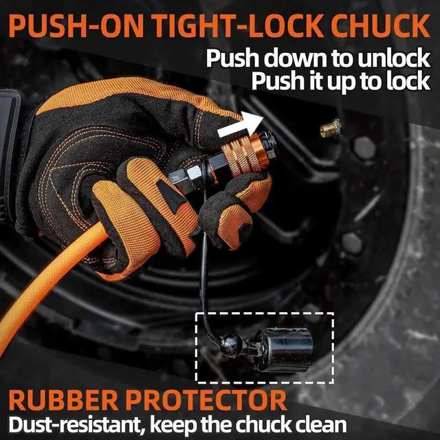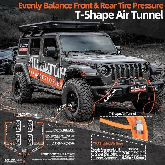 Worry-Free Air Hose Premium TPU Braided Air Hose Set, designed with Work Pressure Limit up to 300PSI to allow high speed air flow and avoid over-pressure breakage. One-Size-Fit-Most Length design allows you to inflate/deflate vehicles with up-to-200in Wheelbase. [F150 WB 122-141" / Wrangler Bronco 4dr WB 115-120" / Tundra WB 145-165" for approx. Estimation]