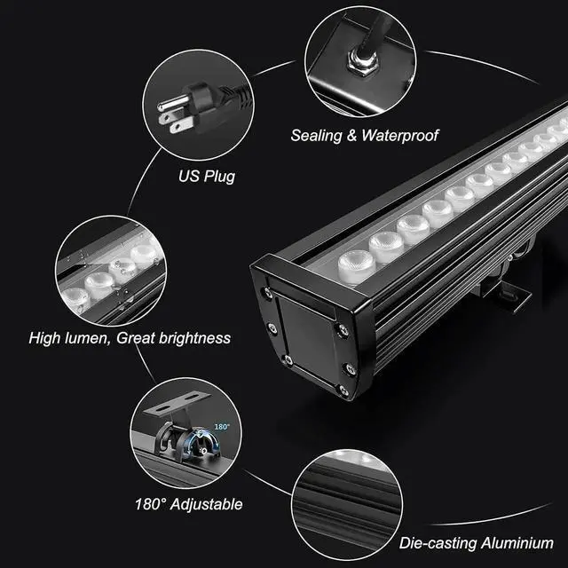- Ultra-Bright & Energy Efficient: Equipped with 36 high-performance LEDs (CRI >86) and a 45° beam angle, this 144W commercial-grade wall washer delivers up to 14, 400 lumens while consuming 80% less energy than traditional floodlights. With a wide voltage range of 100277V AC, designed for industrial and commercial lighting projects
